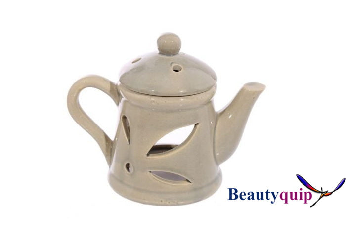 Ceramic Tea Pot Oil Burner with Lid - Sand
