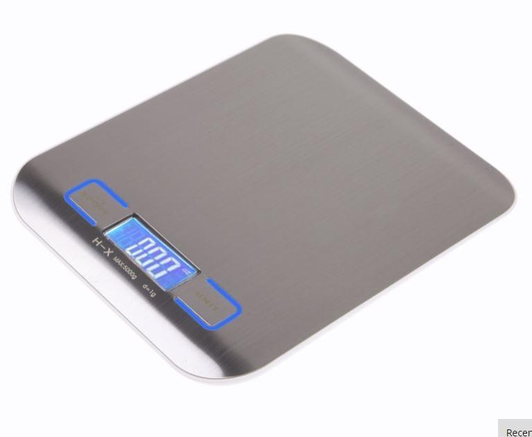 Stainless Steel Digital Scale weighs up to 5kg in 1gm increments, tare, precision, ideal for kitchen, crafts, medical, etc