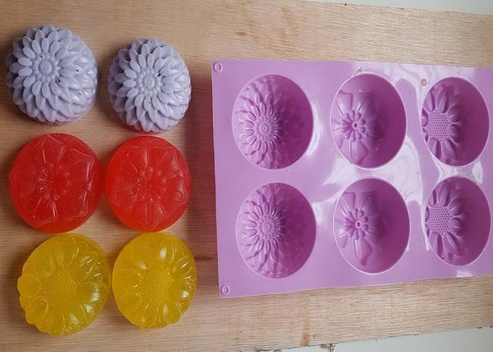 This mold makes 6 really nice flower pattern soaps (3prs) which can weigh from 80gm t0 100gm depending on how much you fill, great for gifts for yourself or the market,